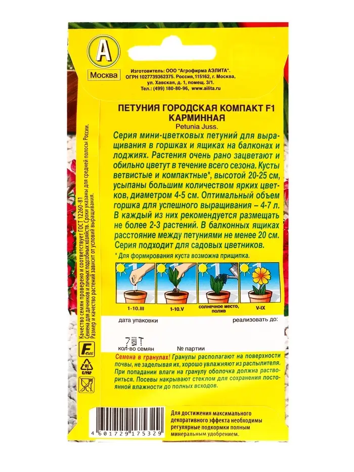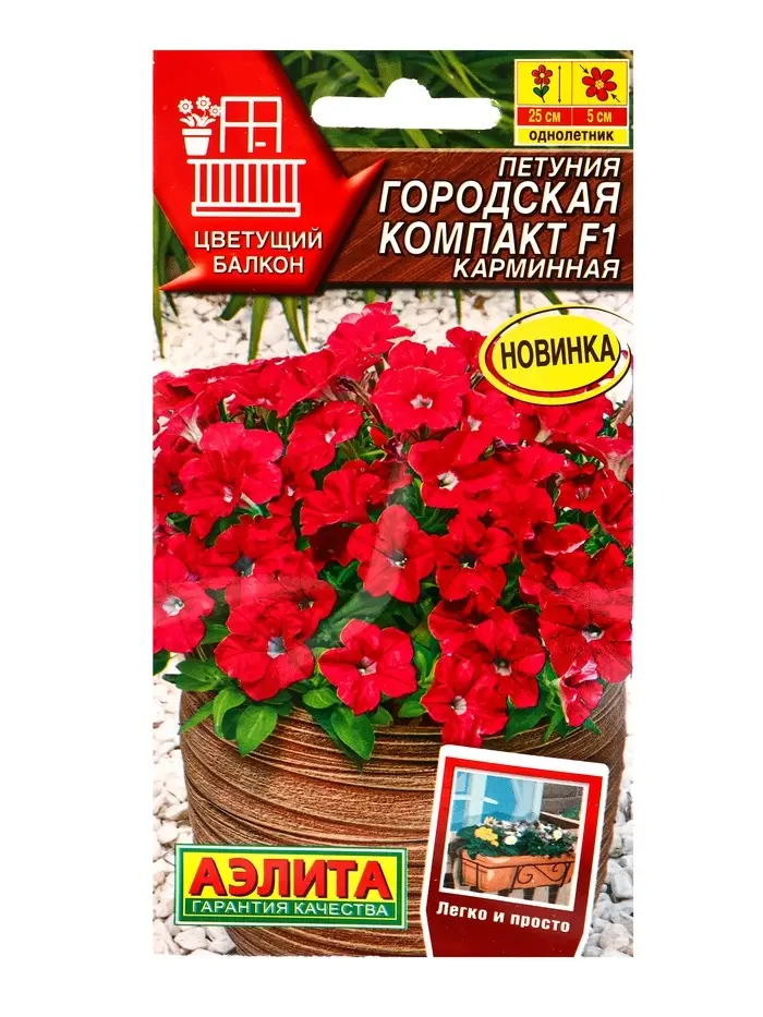 Семена цветов Петуния Городская компакт F1 карминная (драже) Цветущий балкон, Ц/П,7 шт.