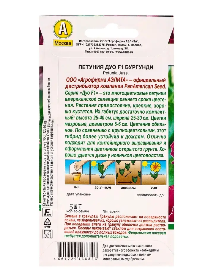 Семена цветов Петуния Дуо F1 бургунди (драже в пробирке) Спецсерия PanAmerican, Ц/П,5 шт.