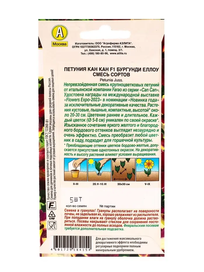 Семена цветов Петуния Кан кан F1 бургунди еллоу, смесь сортов (драже), Ц/П,5 шт.