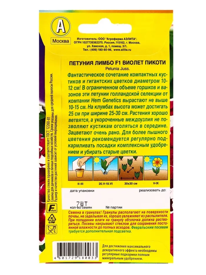 Семена цветов Петуния Лимбо F1 виолет пикоти крупноцветковая (драже) С. Hem Genetics, Ц/П,7 шт. 1094