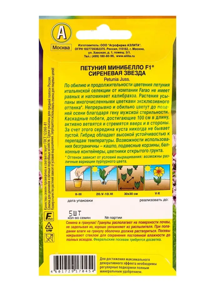 Семена цветов Петуния мини Минибелло F1 сиреневая звезда многоцветковая (драже) С. Farao, Ц/П,5 шт.