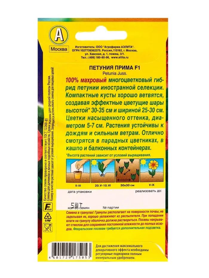 Семена цветов Петуния Прима F1 многоцветковая махровая (драже в пробирке), Ц/П,5 шт.