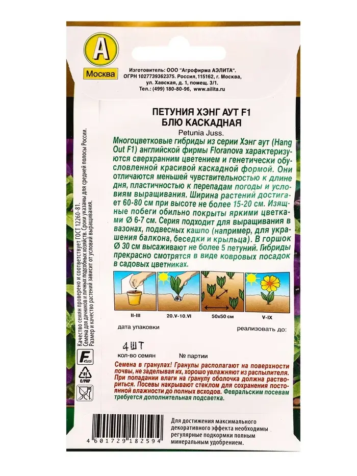 Семена цветов Петуния Хэнг аут F1 блю каскадная (драже) С. Floranova , Ц/П,4 шт.