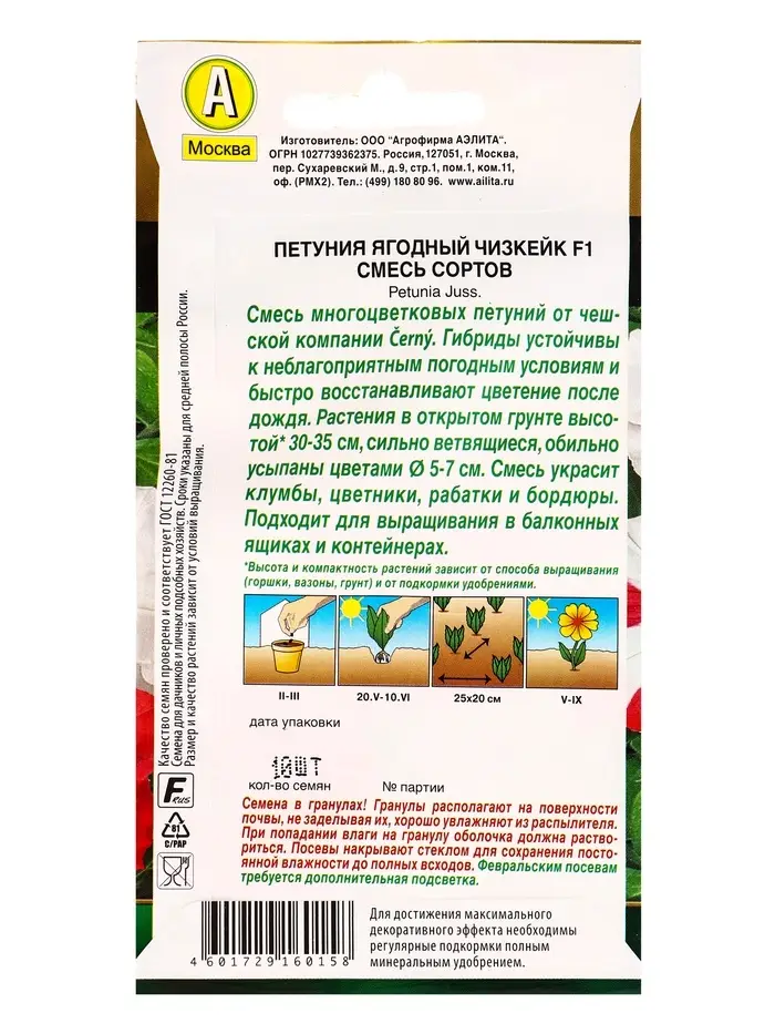 Семена цветов Петуния «Ягодный чизкейк», F1, смесь сортов, драже, С. Cerny, 10 шт.