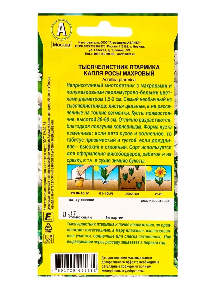 Семена цветов Тысячелистник махровый Капля росы Мн, Ц/П,0,1 г