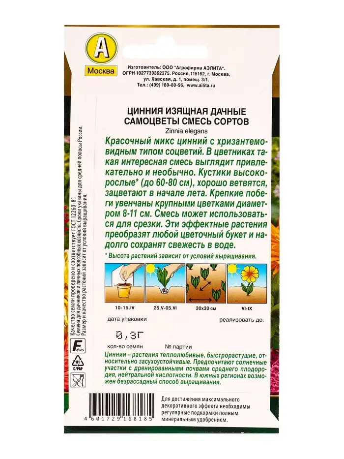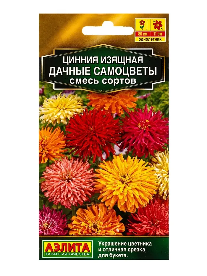Семена цветов Цинния Дачные самоцветы, смесь сортов Золотая серия, Ц/П,0,3 г