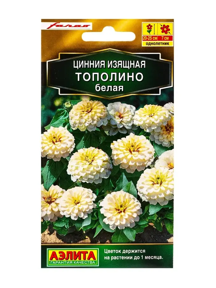 Семена цветов Цинния Тополино белая Золотая серия, Ц/П,12 шт.