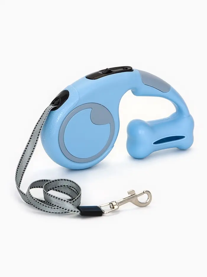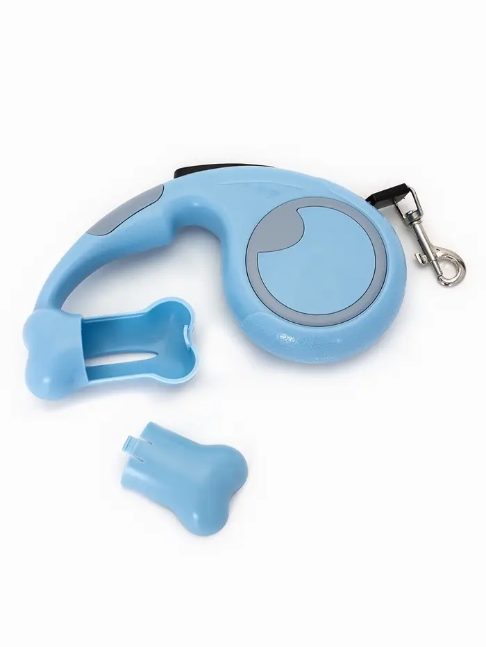 Рулетка - поводок «Косточка», 3 м, с контейнером для пакетов, пластик, голубая
