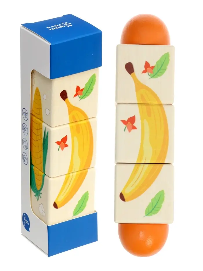 Кубики деревянные на оси «Овощи» , 3 кубика