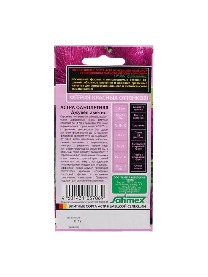 Набор семян Астра игольчато-коготковая "Джувел Аметист", однолетняя, 5 шт.