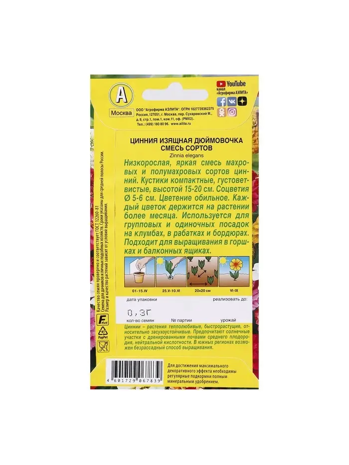Набор семян Цинния "Дюймовочка", смесь окрасок, О, 5 шт.