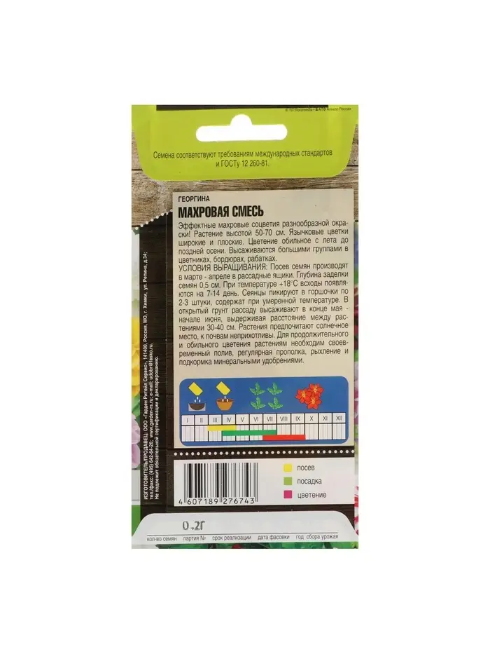 Набор семян Георгина "Махровая" смесь, О, 5 шт.
