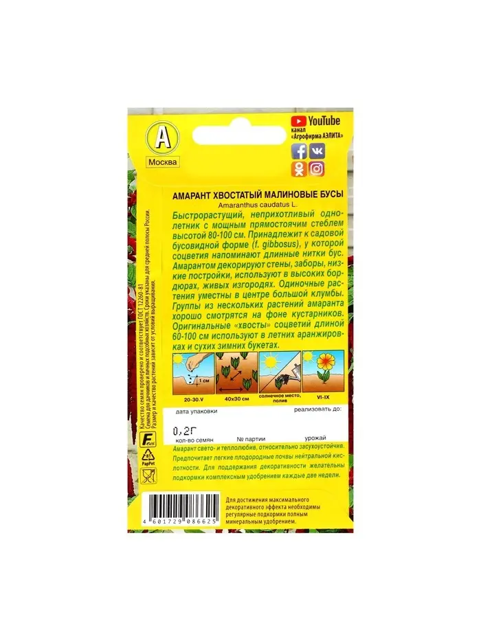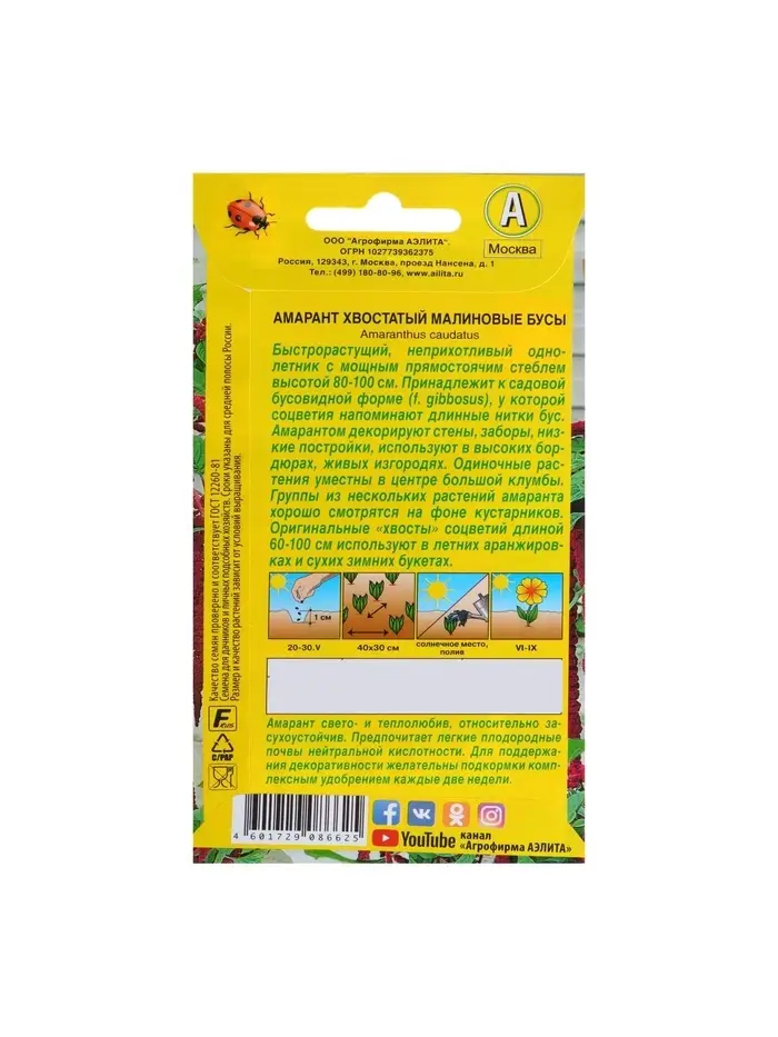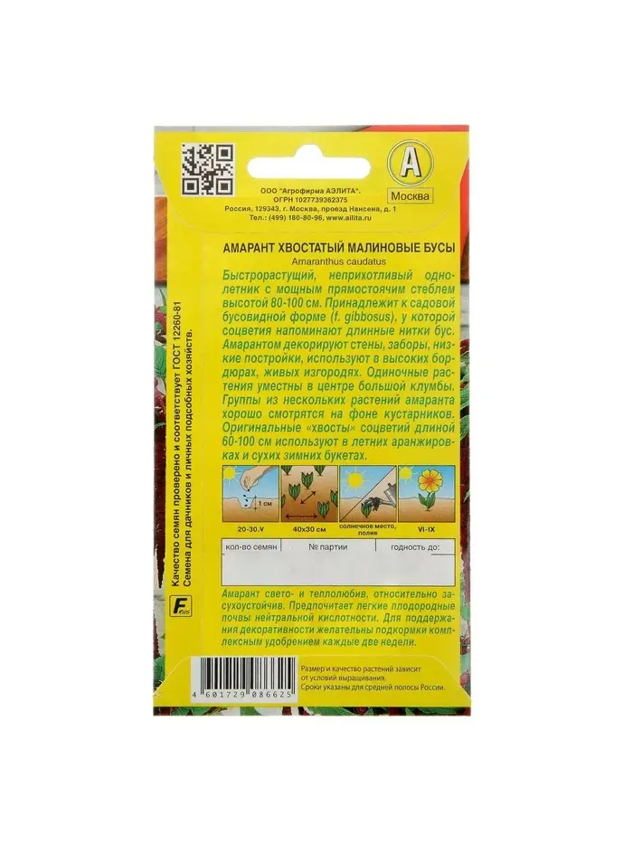 Набор семян Амарант "Малиновые бусы", О, 5 шт.