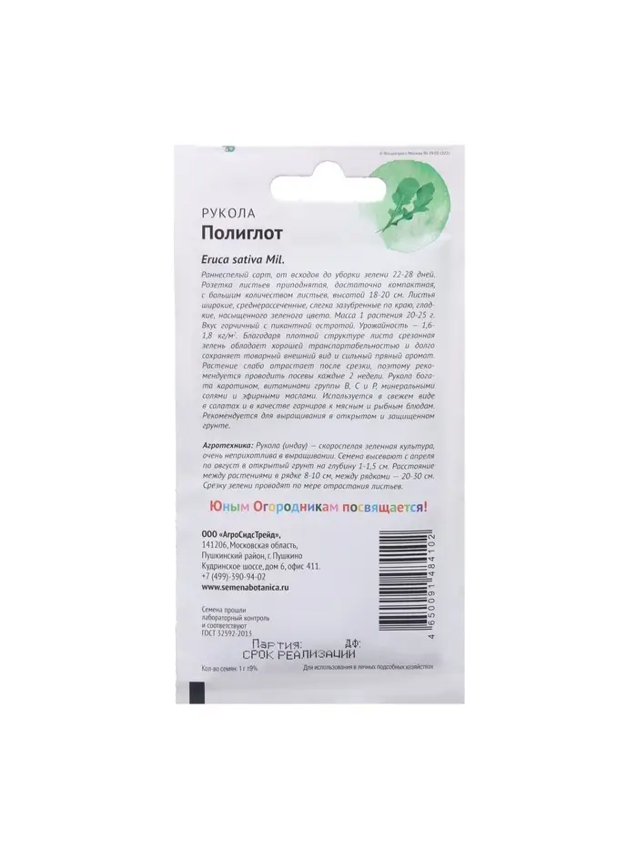 Набор семян Рукола "Полиглот", 5 шт.