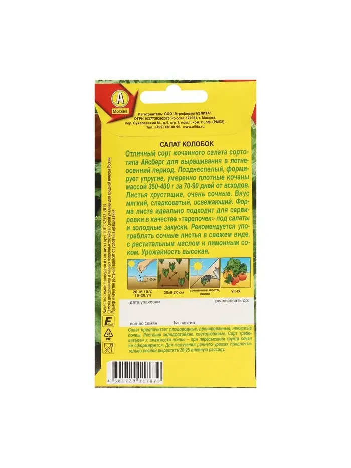 Набор семян Салат "Колобок кочанный" тип Айсберг, 5 шт.