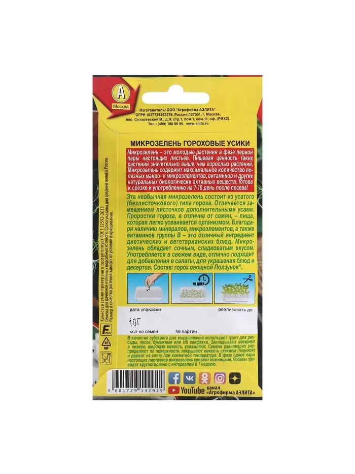 Набор семян Микрозелень "Гороховые усики", 5 шт.