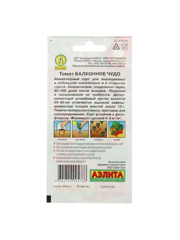 Набор семян Томат "Балконное чудо", детерминантный,низкорослый, 5 шт.
