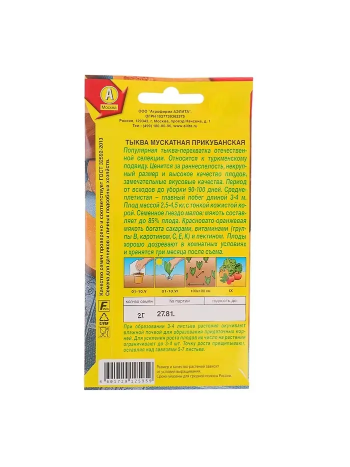 Набор семян Тыква мускатная "Прикубанская", 5 шт.