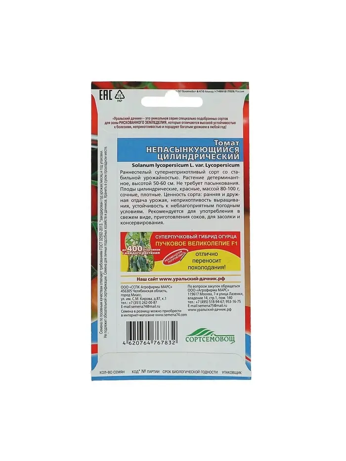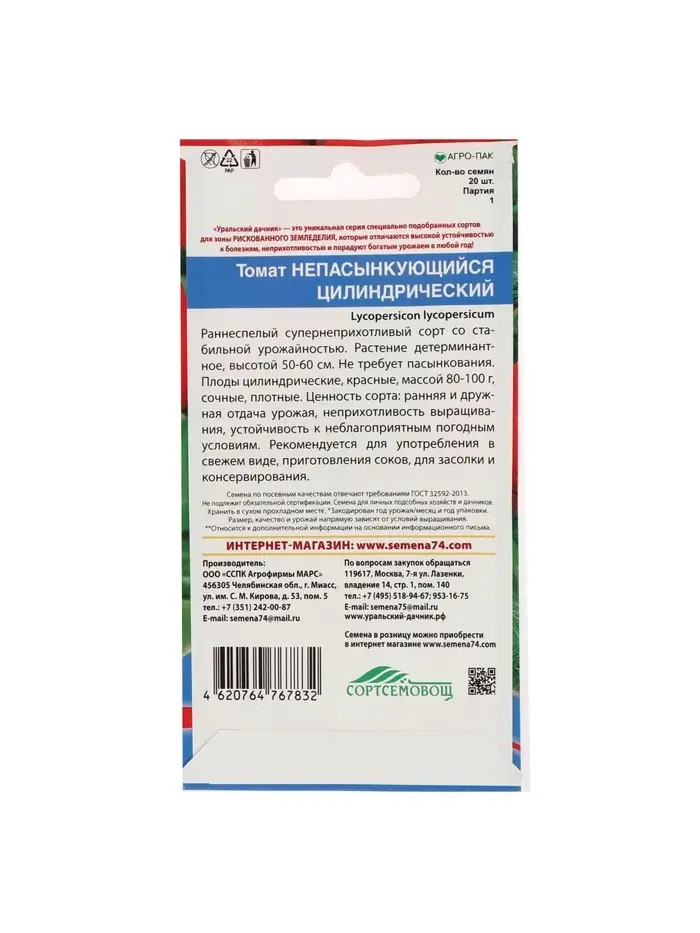 Набор семян Томат "Непасынкующийся Цилиндрический" низкорослый, 5 шт.
