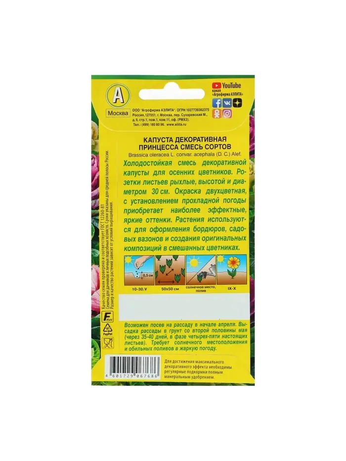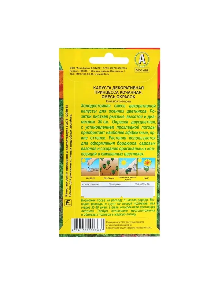 Набор семян Капуста декоративная "Принцесса", смесь окрасок, О, 5 шт.
