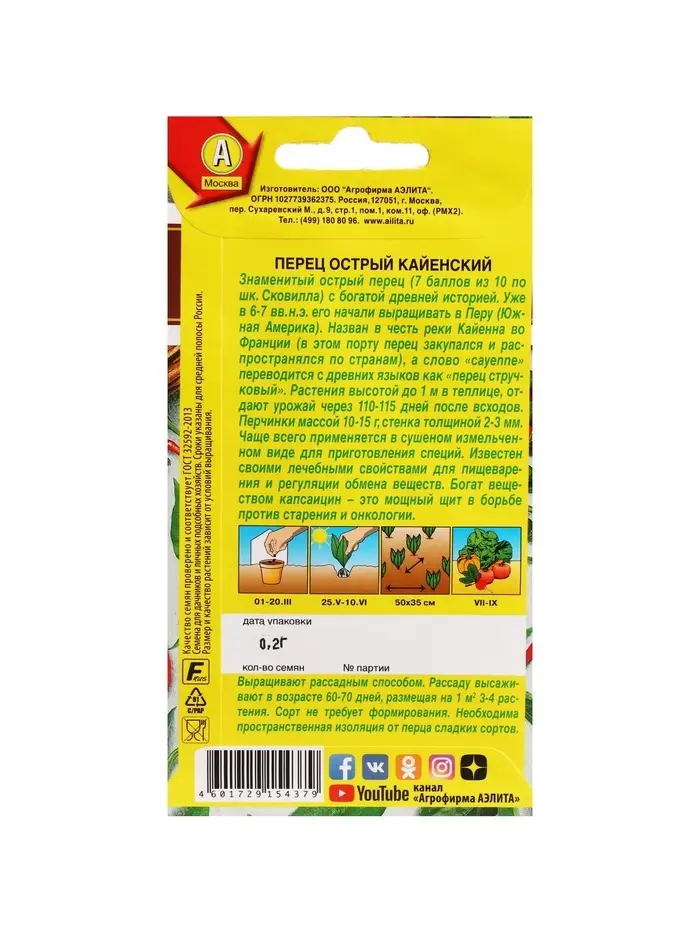 Набор семян Перец острый "Кайенский", 5 шт.