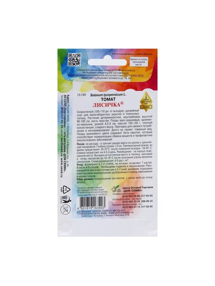 Набор семян Томат "Лисичка" Дом семян, скороспелый, детерминантный, среднерослый, 5 шт.