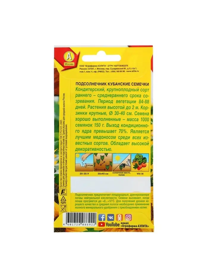 Набор семян Подсолнечник "Кубанские семечки", 5 шт.