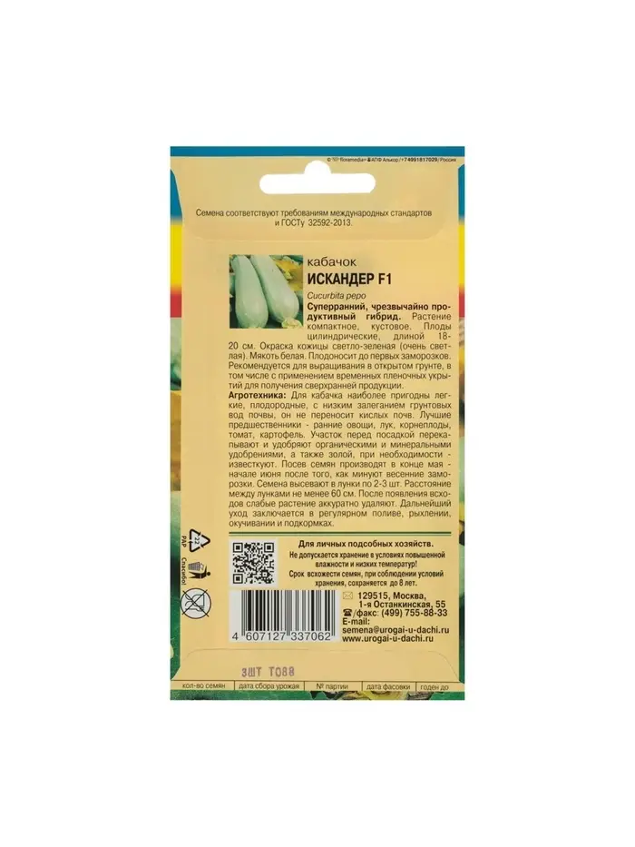 Набор семян Кабачок "Искандер", 4 шт.