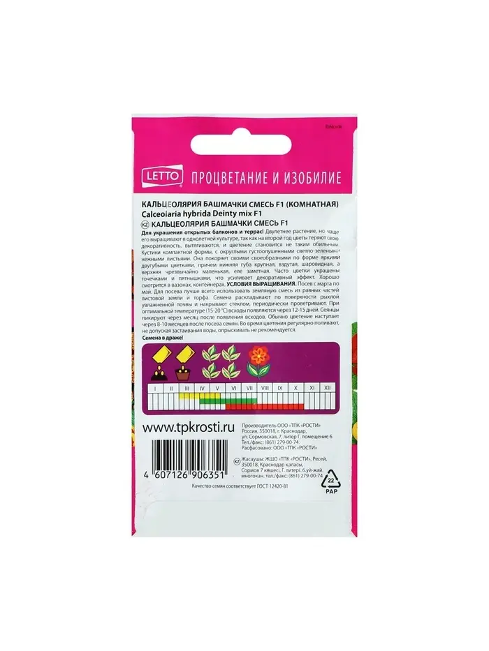 Набор семян комнатных Кальцеолярия "Башмачки", 4 шт.