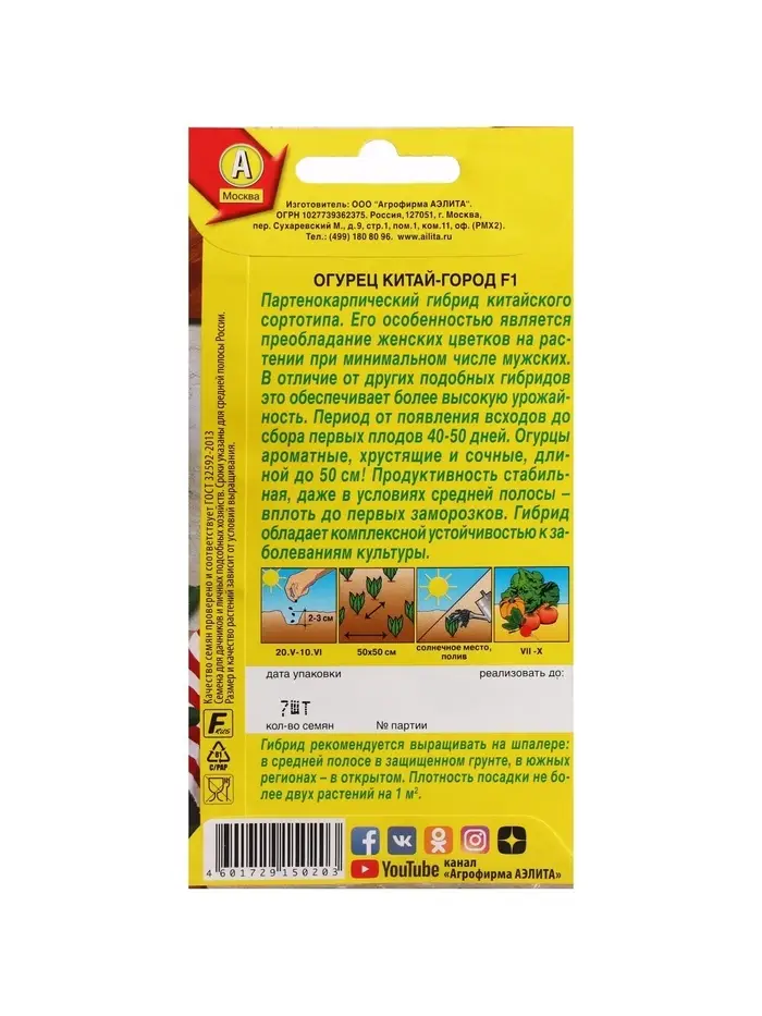Набор семян Огурец "Китай-город", F1, , 5 шт.