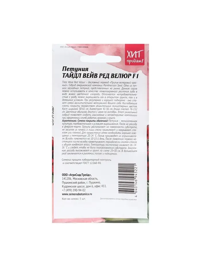 Набор семян Петуния "Тайдал Вейв Ред Велюр", 2 шт.
