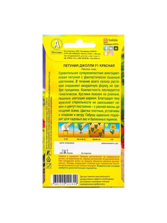 Набор семян Петуния Джолли красная F1 многоцветковая, 4 шт.