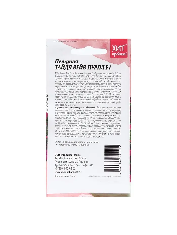 Набор семян Петуния "Тайдал Вейв Пурпл", 2 шт.