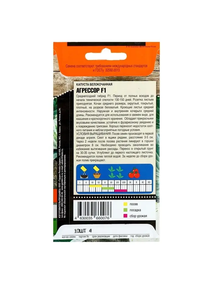 Набор семян Капусты белокочанной "Агрессор", F1, 4 шт.