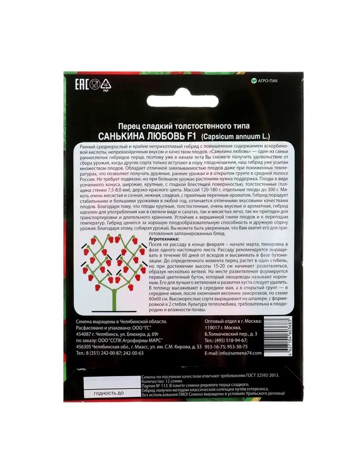 Набор семян Перец сладкий "Санькина любовь" F1, 4 шт.