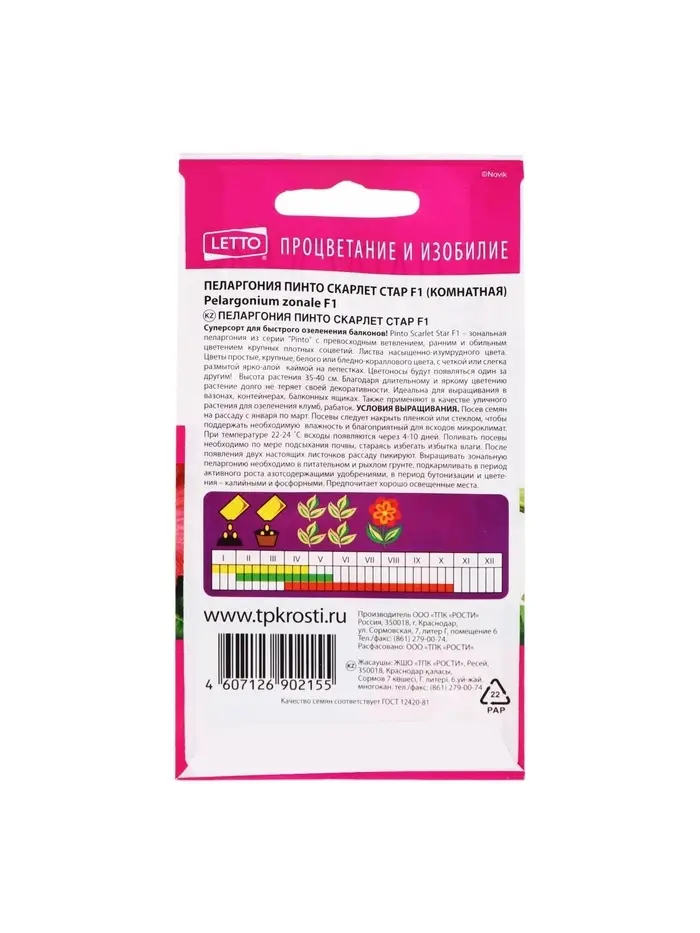 Набор семян Пеларгония "Пинто Скарлет Стар", F1, 3 шт.