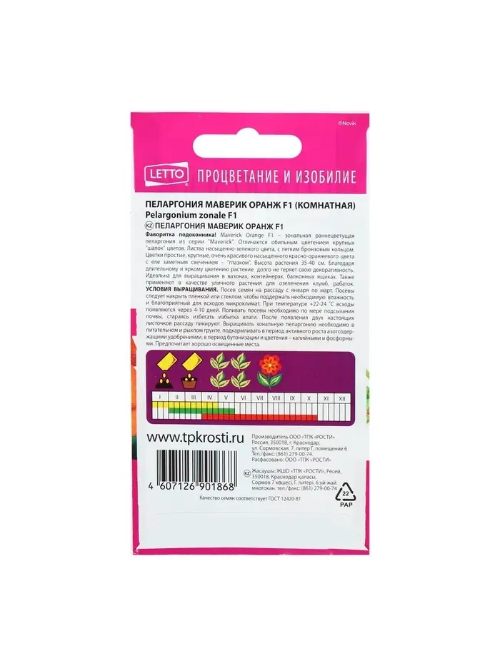 Набор семян комнатных Пеларгония "Oранж", 3 шт.
