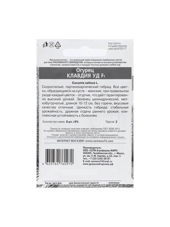 Набор семян Огурец "Клавдия", F1, 5 шт.
