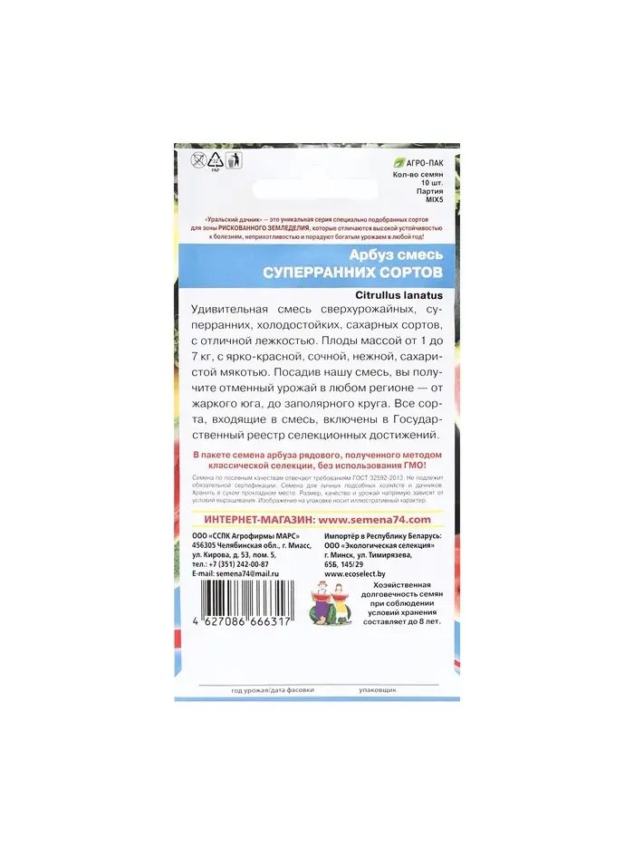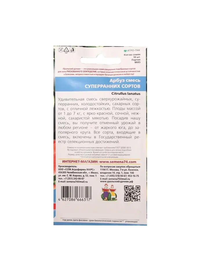 Набор семян Арбуз "Смесь Суперранних Сортов", 5 шт.