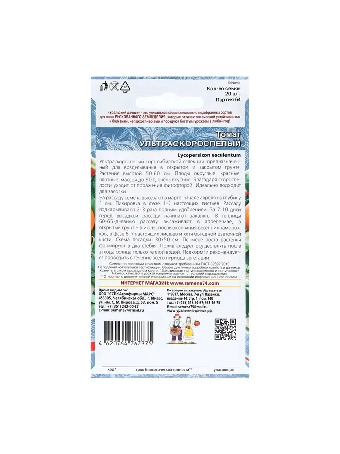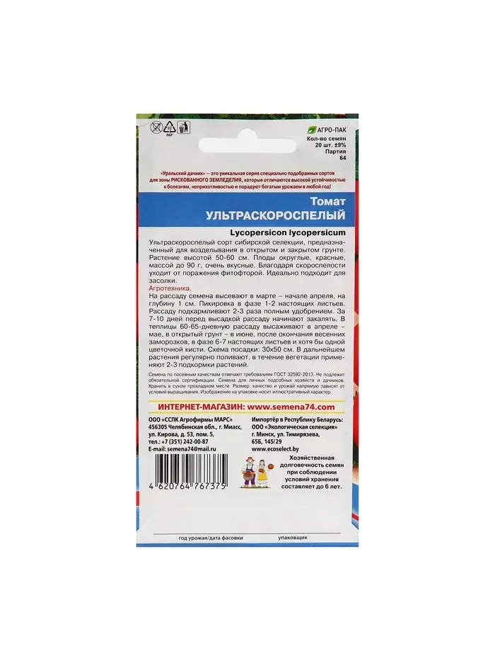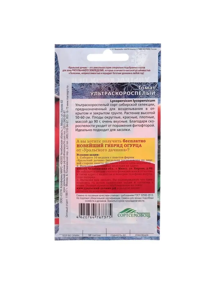 Набор семян Томат "Ультраскороспелый",детерминантное,низкорослый, 5 шт.