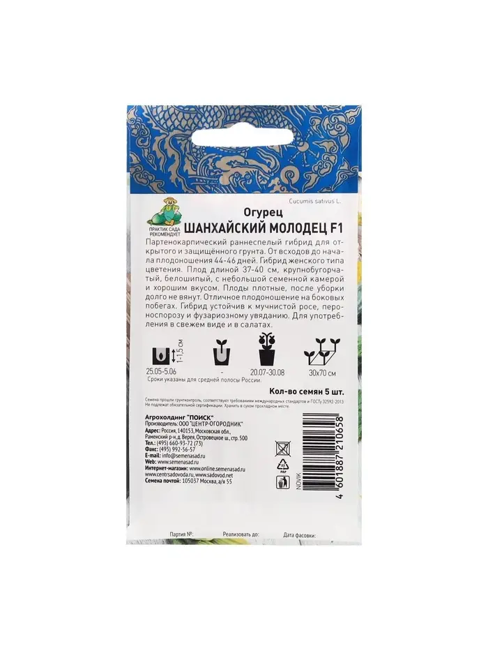 Набор семян Огурец "Шанхайский молодец" F1, партенокарпический, 5 шт.