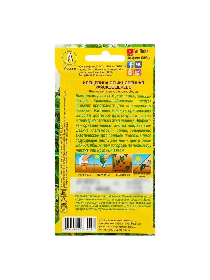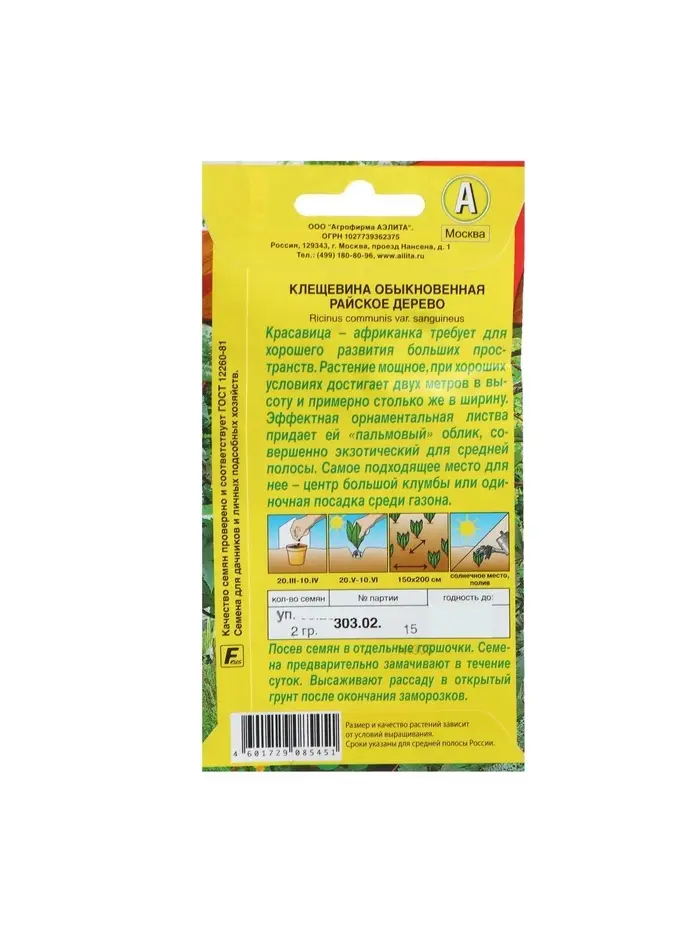 Набор семян Клещевина "Райское дерево", О, 5 шт.