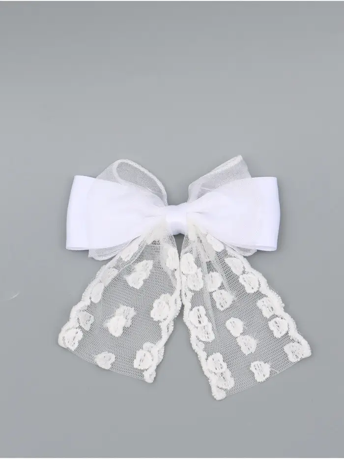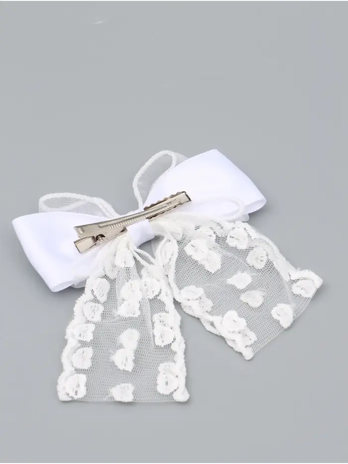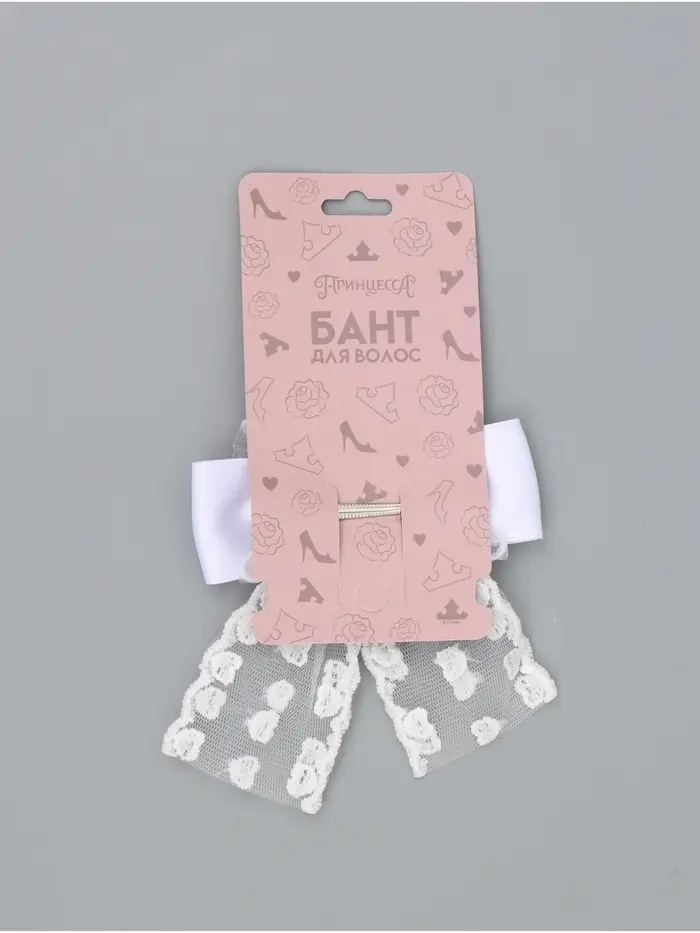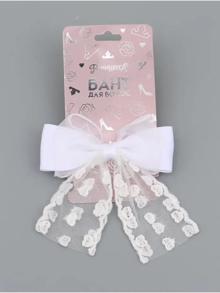 Бант для волос на заколке с лентами «Сердечки», белый, Принцессы