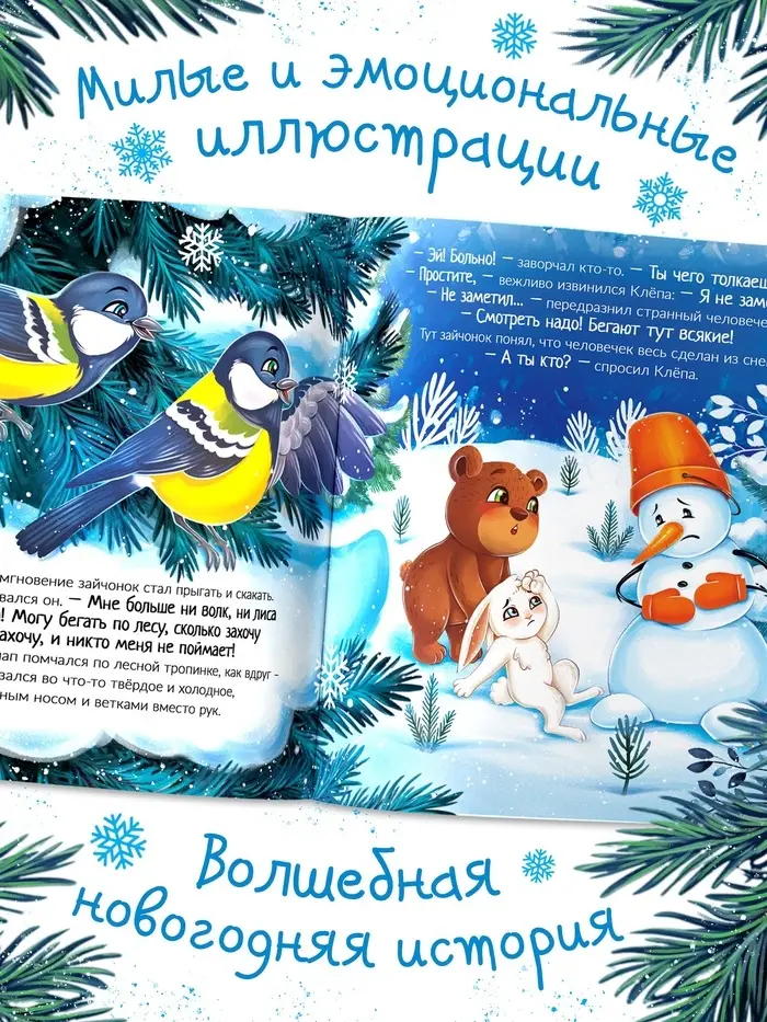 - Яркие иллюстрации создают живую картину зимнего леса и праздничного настроения, вдохновляя на воображение.