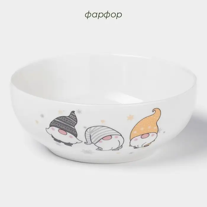 Салатник новогодний «Домашние гномики», 580 мл, d=15,5 см, фарфор, цвет белый