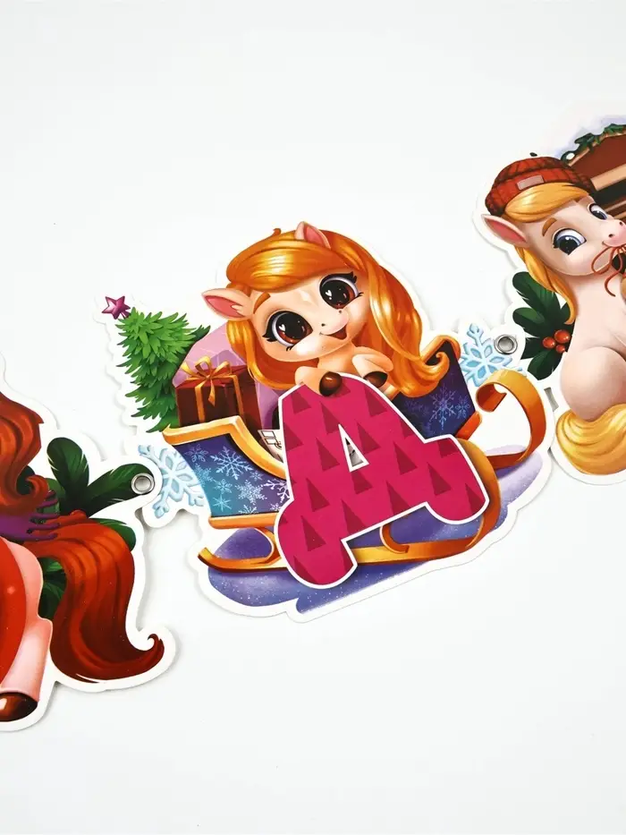 Гирлянда на люверсах «С новым годом!», лошадки, длина 150 см