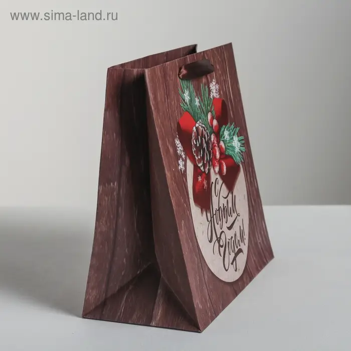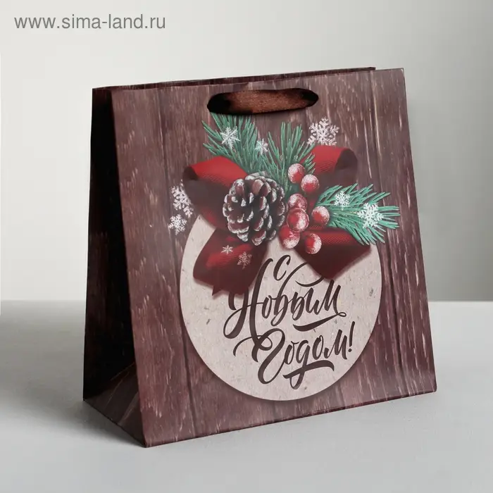 Пакет подарочный новогодний ламинированный квадратный «Новогоднее поздравление», 22 х 22 х 11 см