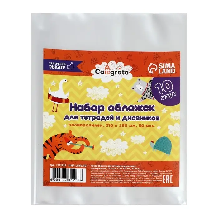 Набор обложек ПП 10 штук, 210×350 мм, 50 мкм, для тетрадей и дневников (в мягкой обложке)