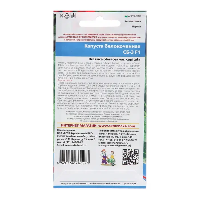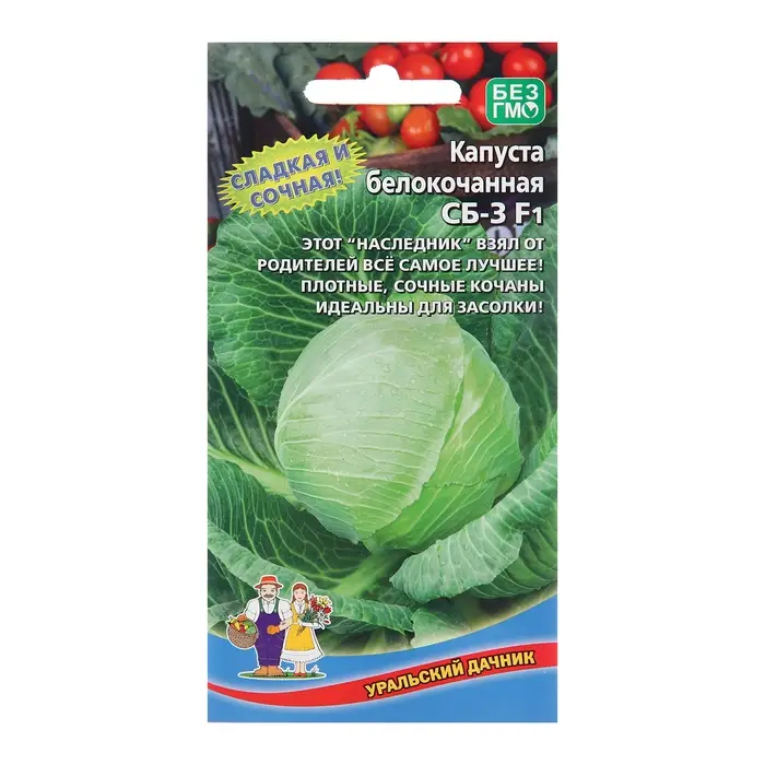 Семена Капуста СБ 3 F1 белокочанная. Среднеспелый гибрид с дружным формированием урожая, период от всходов до начала технической спелости 130-140 дней. Урожайность высокая, 10-13 кг/м2. Кочаны округлые, плотные, массой 3-4,5 кг, выравненные, на разрезе бело-зеленые. Внутренняя кочерыга короткая.