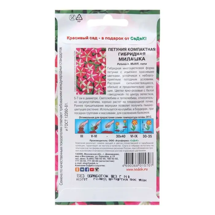 Гибридная многоцветковая форма петунии с изыскано красивыми цветками, устойчивая к неблагоприятным погодным условиям. Растения сильноветвящиеся, обильно и продолжительно цветущие. Цветки ярко-розовые с белой «звездочкой» по центру лепестков, 5-7 см в диаметре. Светолюбива и теплолюбива, относительно засухоустойчива, хорошо растет на плодородной почве. Раннее прищипывание верхушки, позволит получить пышноцветущие растения. Используется на клумбах, бордюрах, при посадках группами и массивами, для озеленения балконов.